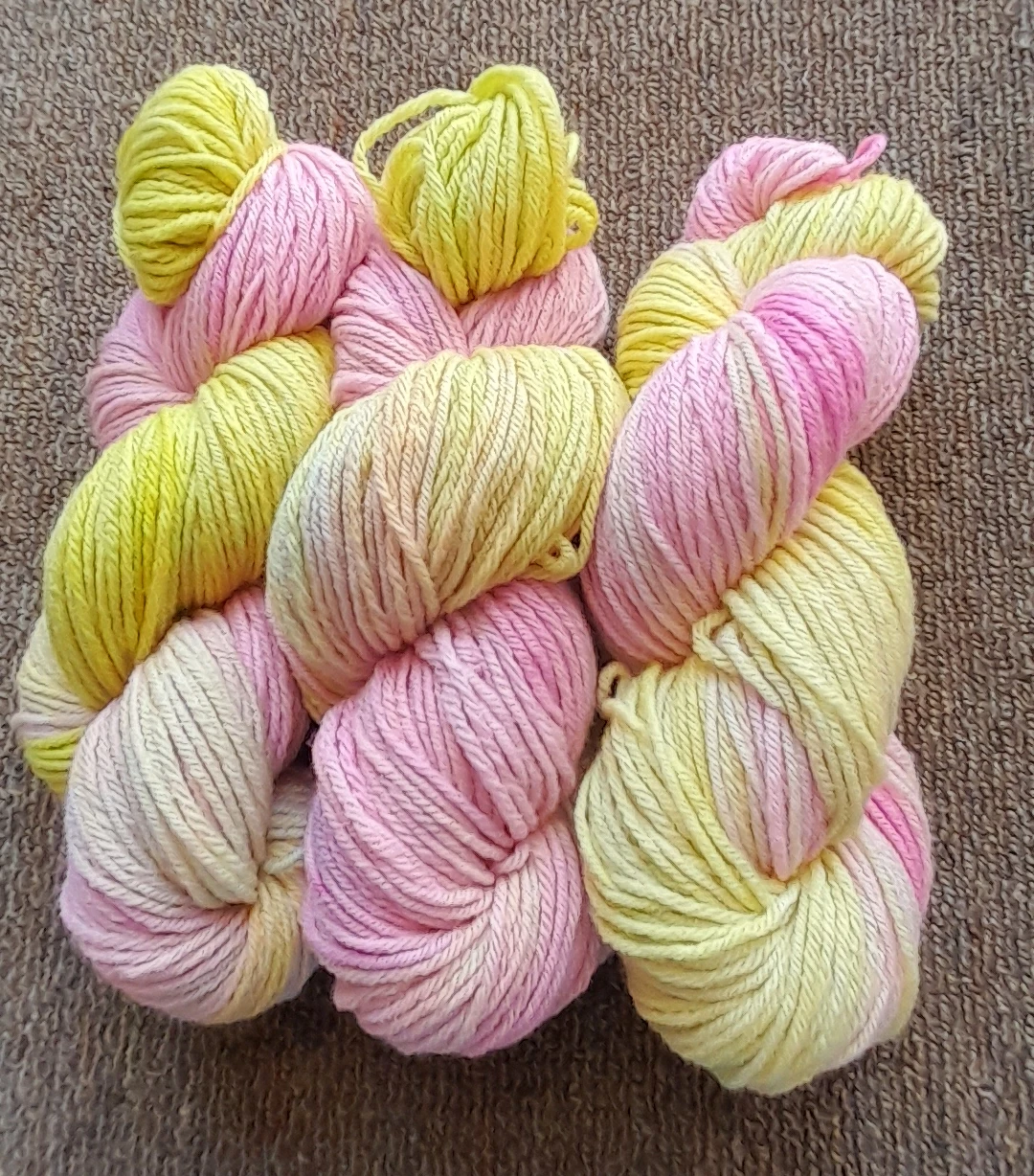 Each skein is hand dyed in small batches, so subtle variations in colour make every one unique.