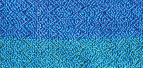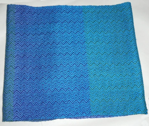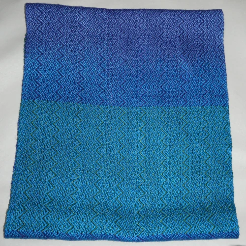 I have hand-dyed and woven this cowl in beautiful shades of blue and green. Crafted from a blend of 50/50 merino and silk with Tencel, it has a soft, fluid texture and a lovely feel against the skin.
