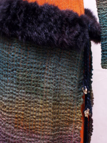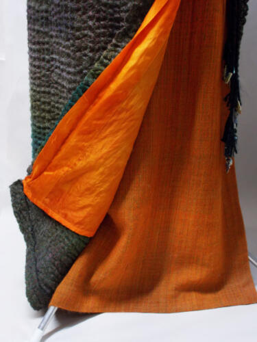 The last garment I made for a fashion parade was Urban Nomad. This was modelled at the Creative Fibre Fashion Parade a few years ago and is the only garment I have kept. At the time I was experimenting with using a wool lycra thread to create ripple effects through fabric, which eventually led onto a whole line of scarves and wraps.